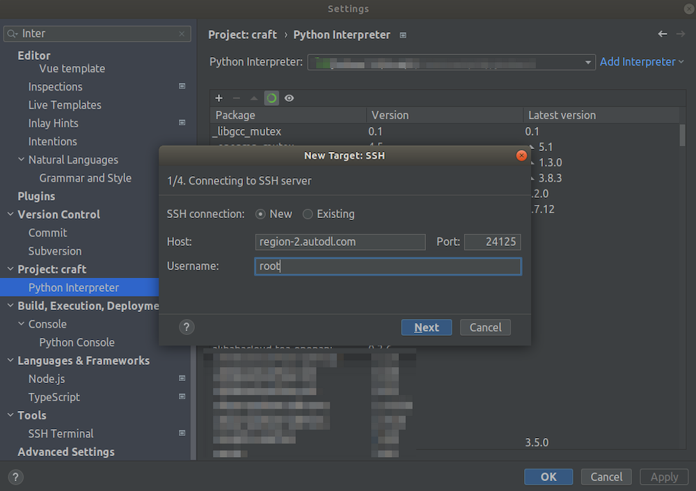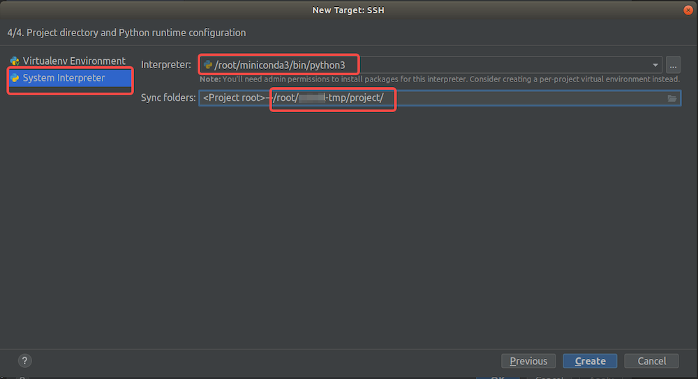 Continue to the next step until you see the following prompt. Choose “System Interpreter” and configure the remote Python interpreter path to