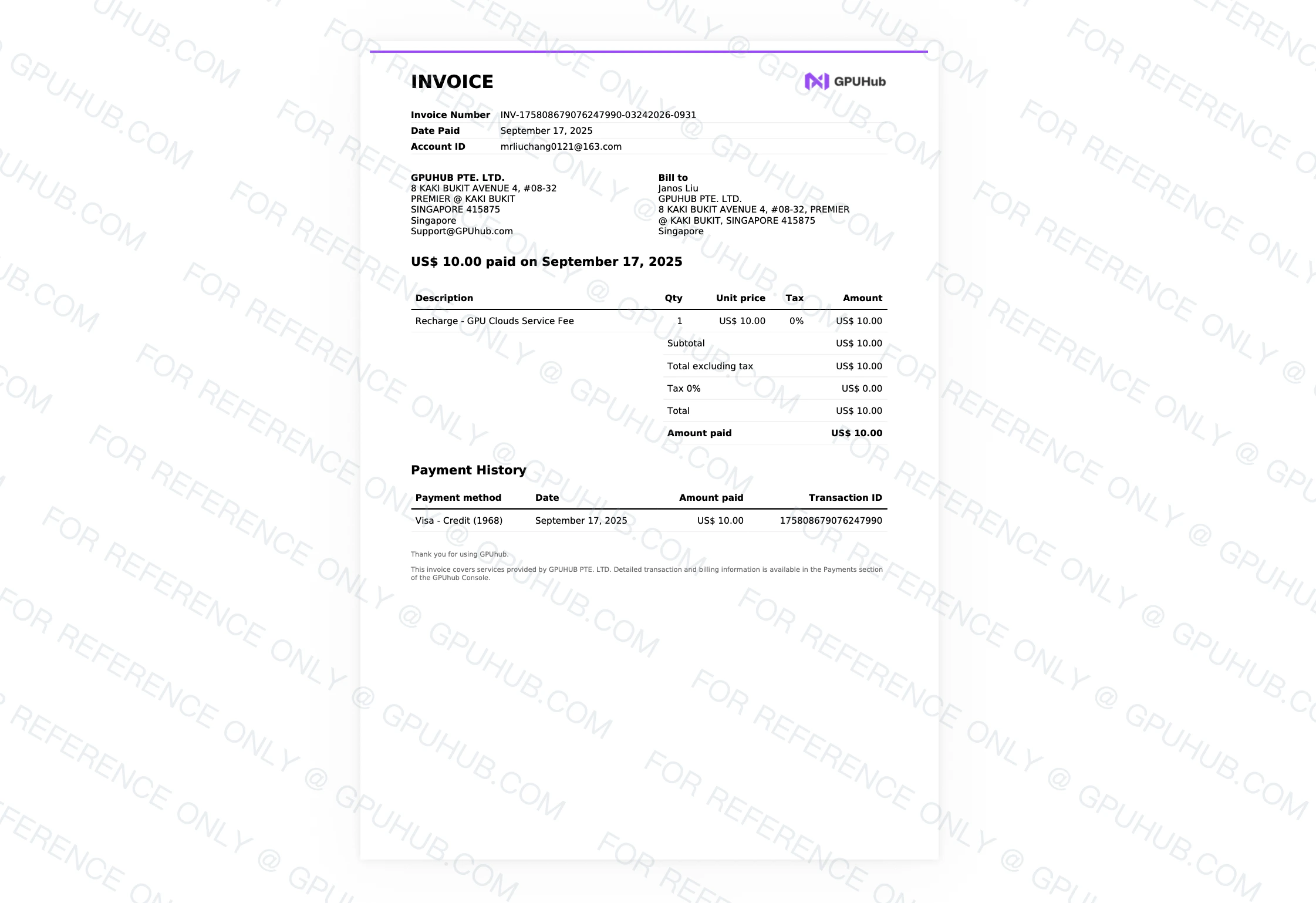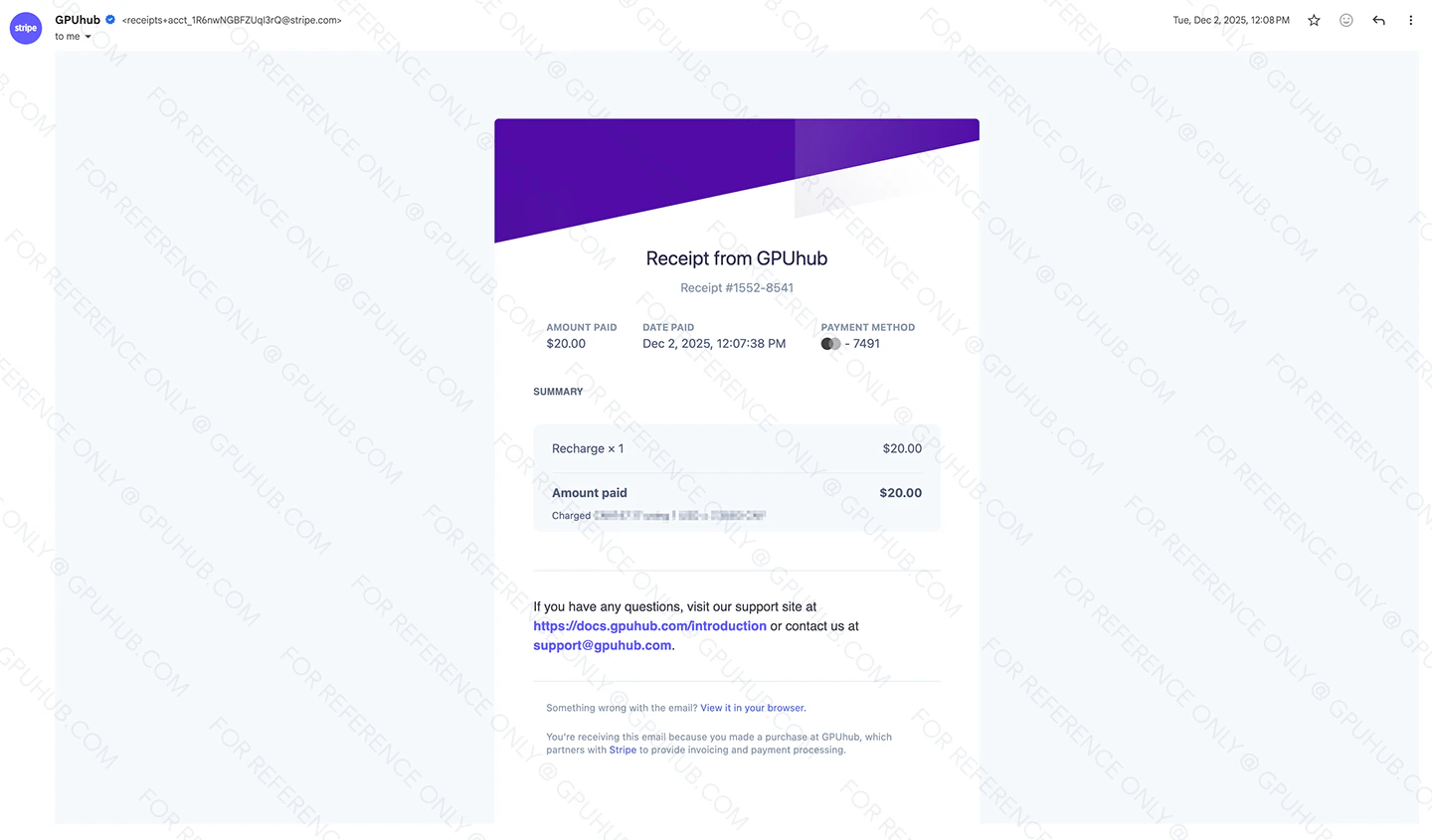 Once your recharge is successful in our console, the email address you provided will automatically receive a receipt—please keep an eye on your inbox. Mail example: