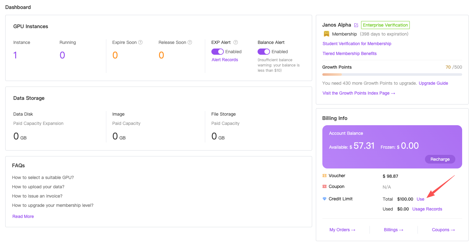 After a customer signs an offline payment agreement with GPUhub, the actual funds may take several business days to arrive. To prevent any service interruption, GPUhub may grant the customer a temporary credit facility (“Credit Points”) that can be drawn down before the payment settles.- Granting
