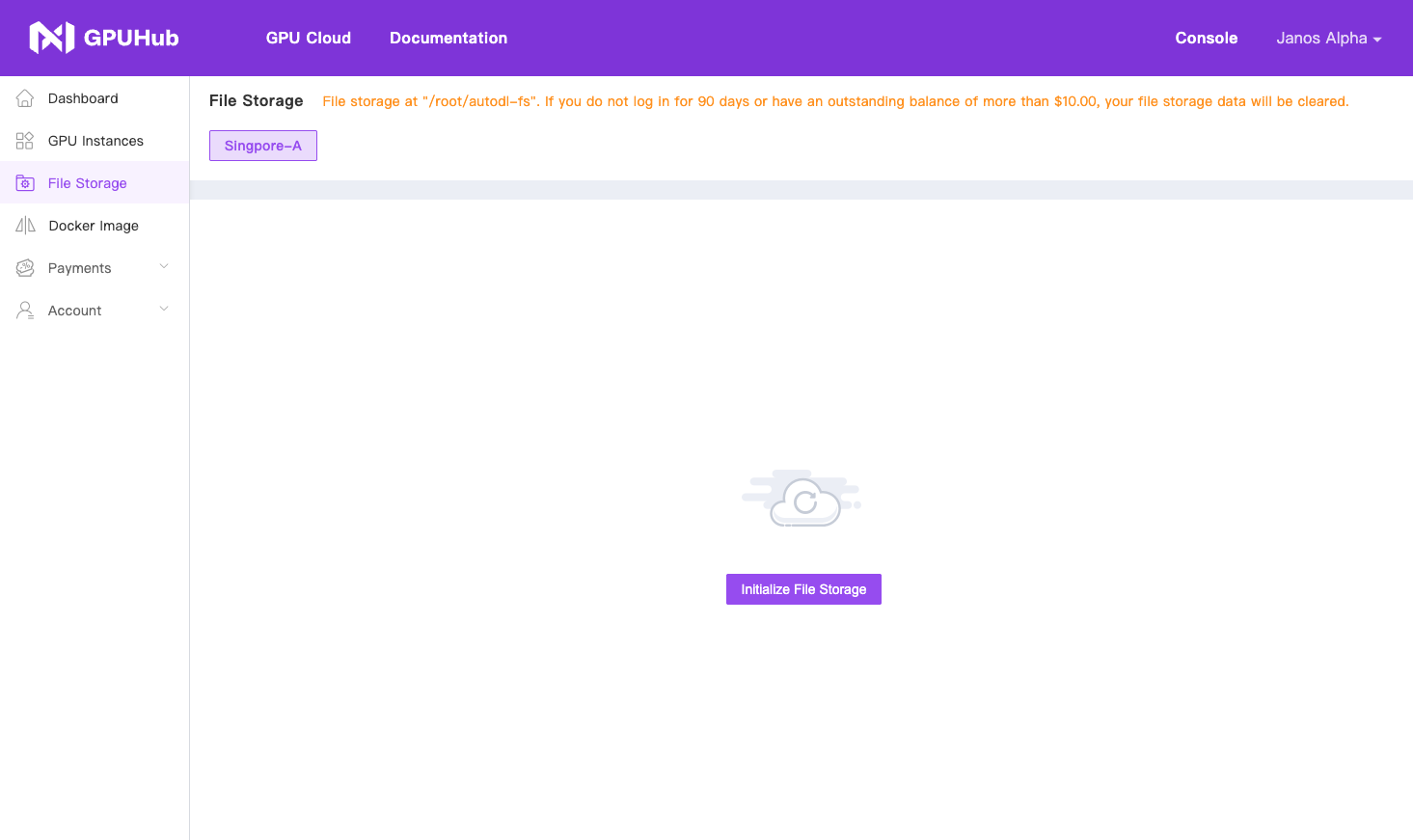 Enter the Console -> File Storage menu, and initialize the file storage for the corresponding region. After creating an instance in that region and starting it, the file storage will be mounted to the/root/gpuhub-fs directory of the instance.