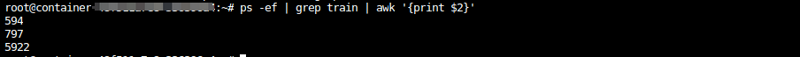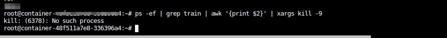 ps -ef | grep train | awk '{print $2}' | xargs kill -9