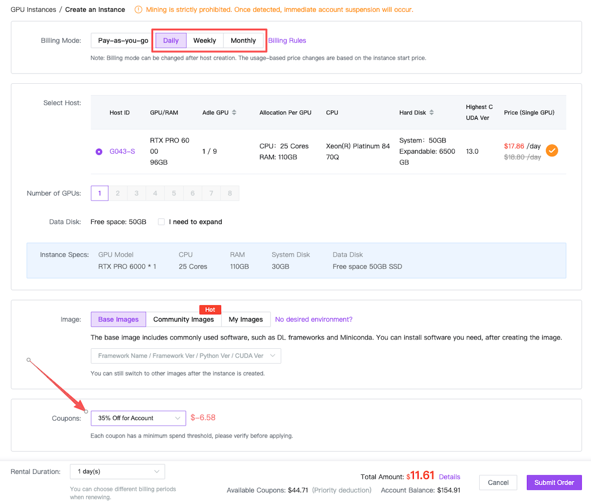 - If you are currently on PAYG mode, you may switch to Subscription mode to apply a coupon, and switch back to PAYG before the subscription period ends.
